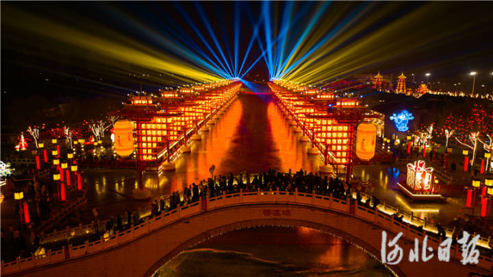 近日,在位于丰南区唐津运河生态旅游度假景区的河头老街,璀璨灯光和精彩活动吸引了众多游客前来观赏。河北日报通讯员王子一摄