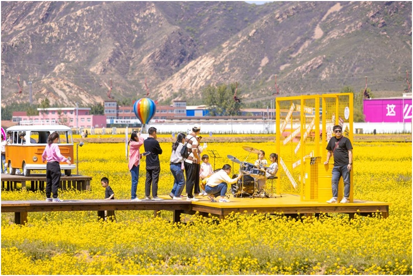 在山里各庄旅游景区,竞相开放的千亩油菜花、穿梭交织的人流、热闹非凡的杂技表演、出圈又出片的网红打卡项目、不可辜负的特色美食,共同构成了一片欢乐的海洋。同时,山里各庄夕阳谷露营基地焕新归来,游客在这里戏水、游览、露营,品美食、赏夜景、住美宿,感受更新鲜、更多元的休闲娱乐体验。