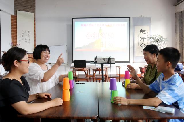 么秀文(左二)在家庭教育课堂上与家长、孩子做互动。(受访者供图)