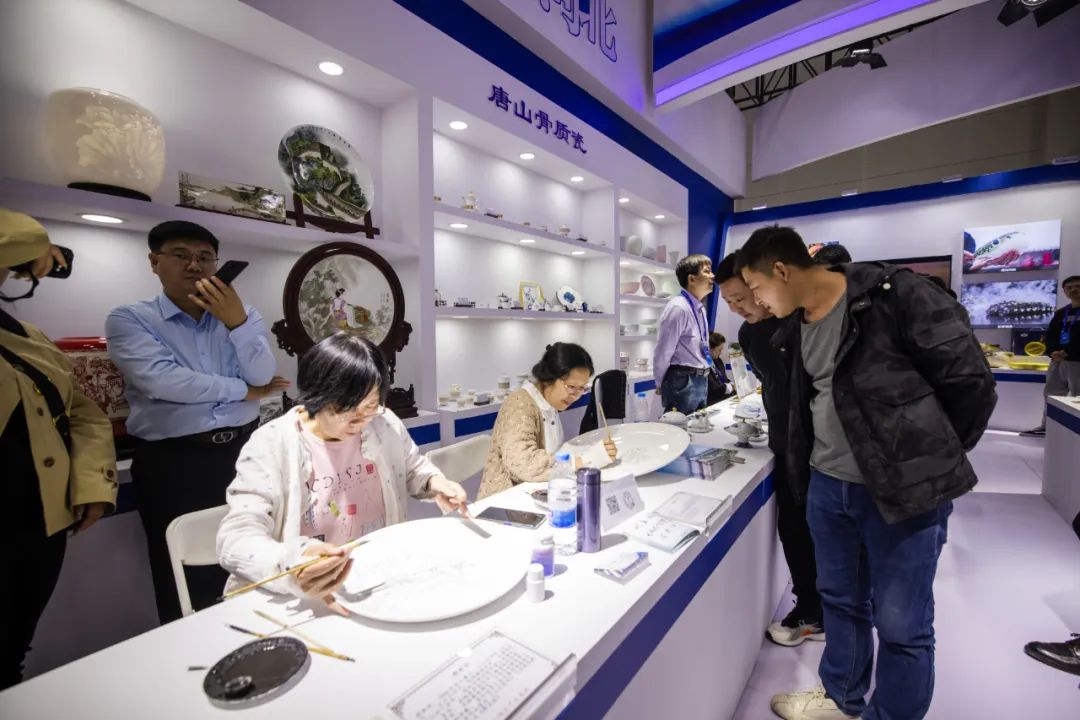 作为唐山的代表性产品,文旅红玫瑰陶瓷应邀参展。唐山专区内的文旅红玫瑰陶瓷展区热闹非凡。精美的陶瓷艺术展品充分展现了唐山骨质瓷的艺术文化深度与内涵,吸引了大批采购商驻足观赏,交流洽谈。