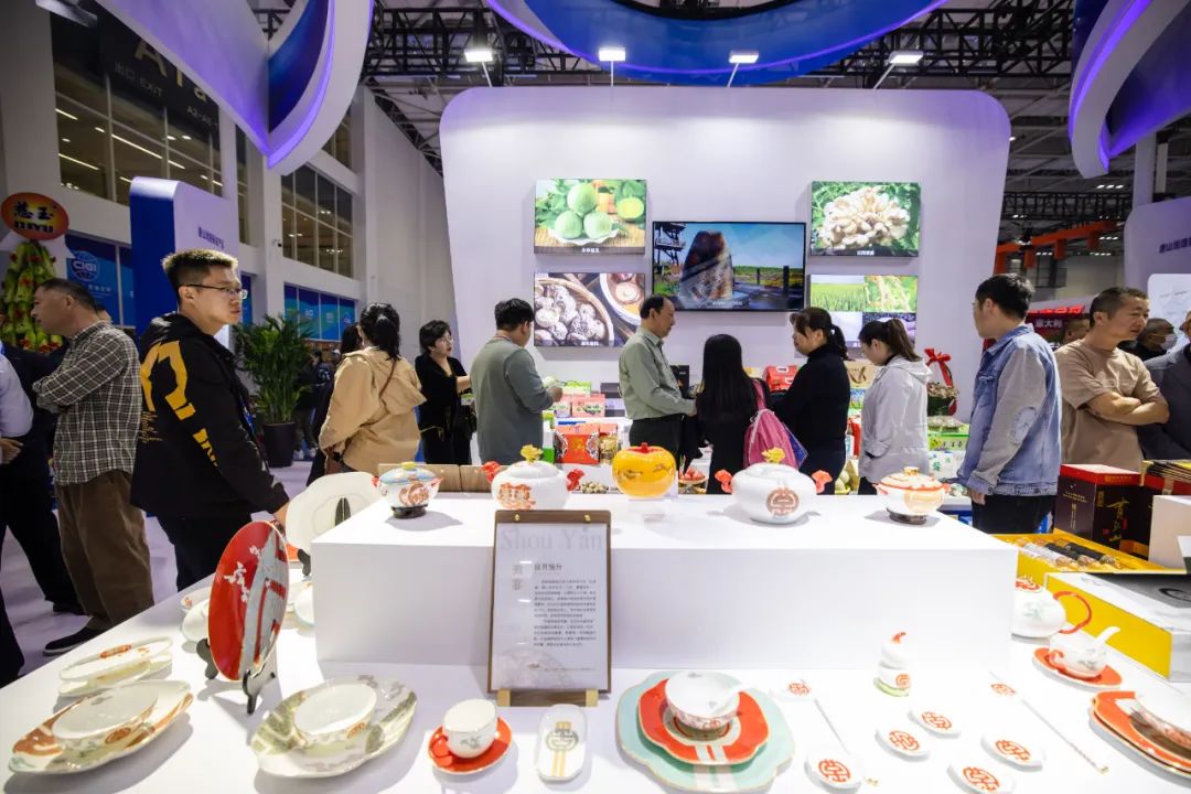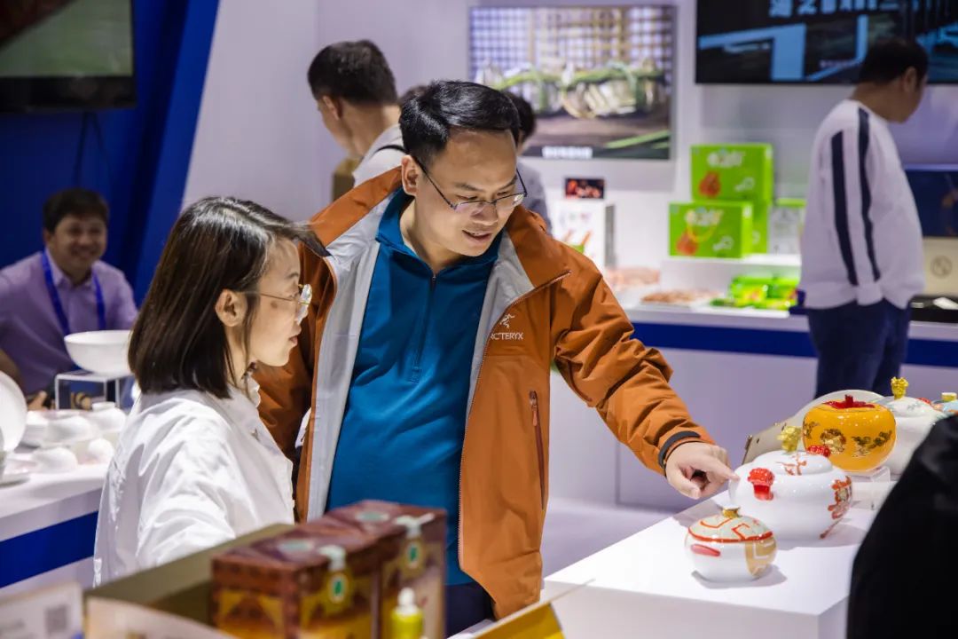 醇香四溢的贵州茅台,美如云霞的南京云锦,“薄如纸、声如磬”的红玫瑰陶瓷......各具魅力的地域风情、琳琅满目的产品种类、极具代表性的地标产品,让大会成为联通政企、融通内外、畅通供需的靓丽纽带。
