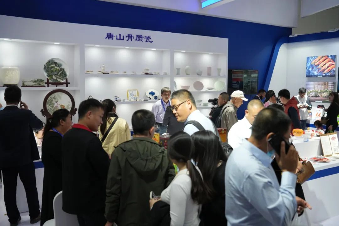 唐山展区全面展示了唐山地标产品、生产企业以及背后的历史故事、自然风貌。参展企业均为地理标志品牌授权使用的头部企业,展品也均为该品类中的优质产品,红玫瑰骨质瓷、唐山河豚、迁西板栗、唐山对虾等均有展示。