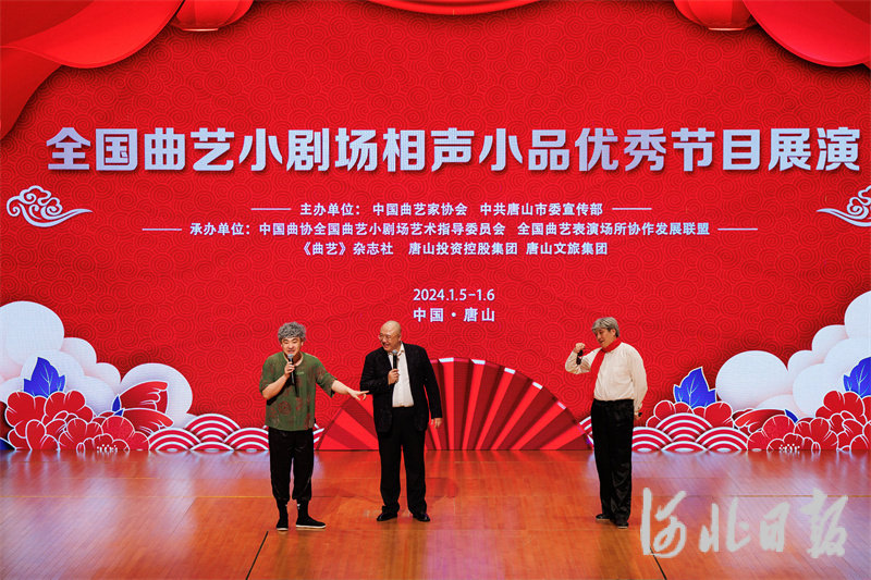 1月6日晚,“曲艺名家新秀‘送欢笑’走进河北唐山”演出在天津时调《秋景》中拉开帷幕。京韵大鼓《重整河山待后生》、二人转《综艺表演》、相声《笑口常开》等掀起了一阵阵欢乐的高潮,观众在笑声中领略到语言艺术的精妙,感受到传统文化在当代的生命力。
