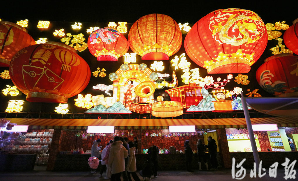 除了赏花灯、看演出,本届灯会还设置了烟火气十足的节庆庙会活动,热门打卡地南湖花巷和广场区域摊位披上节日盛装,喜迎八方来客。现场,100多个摊位汇聚北京豆汁、朝鲜族打糕、西安肉夹馍、武汉热干面、淮南牛肉汤、宁波汤圆等全国特色美食,让游客沉浸式感受舌尖上的春节。