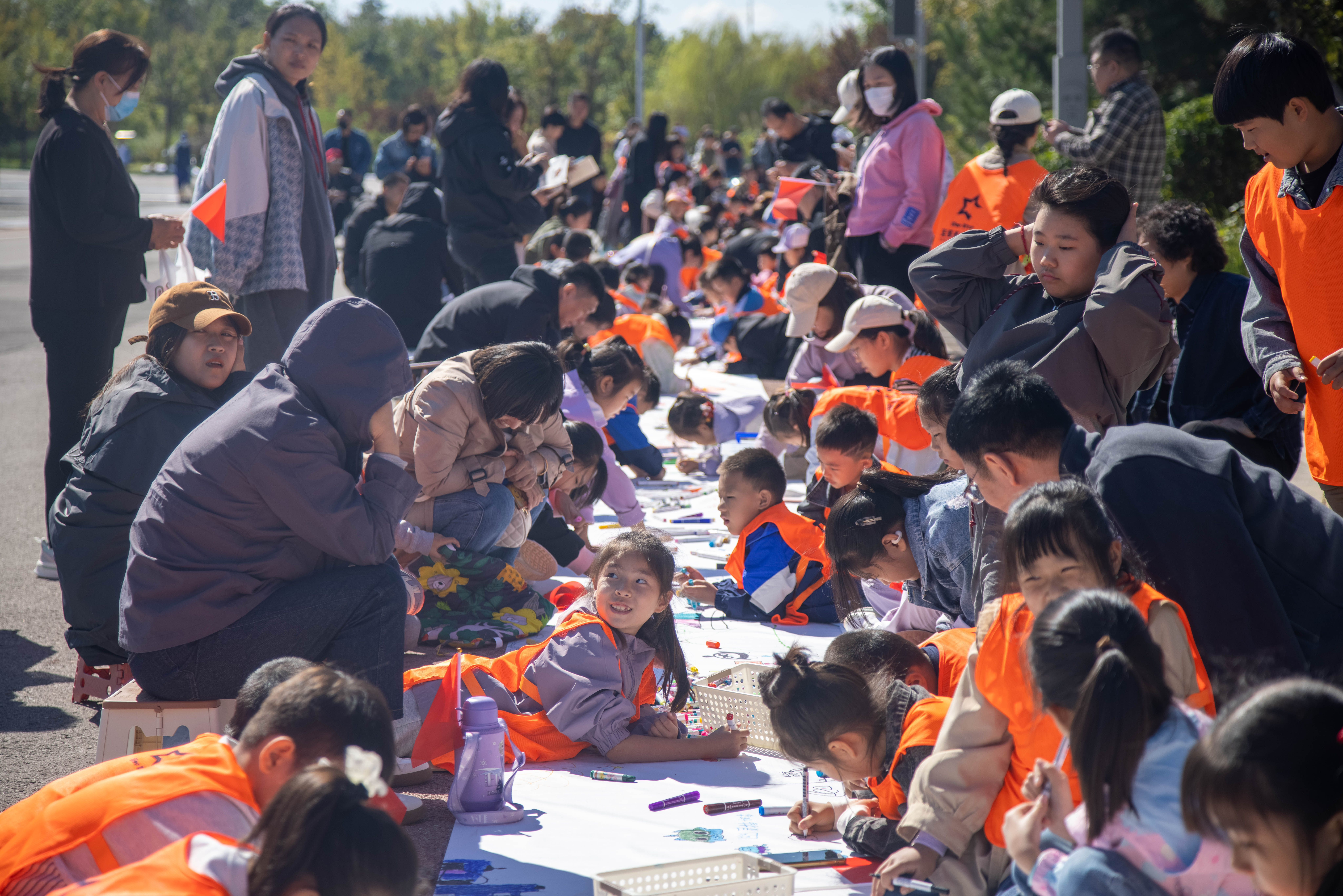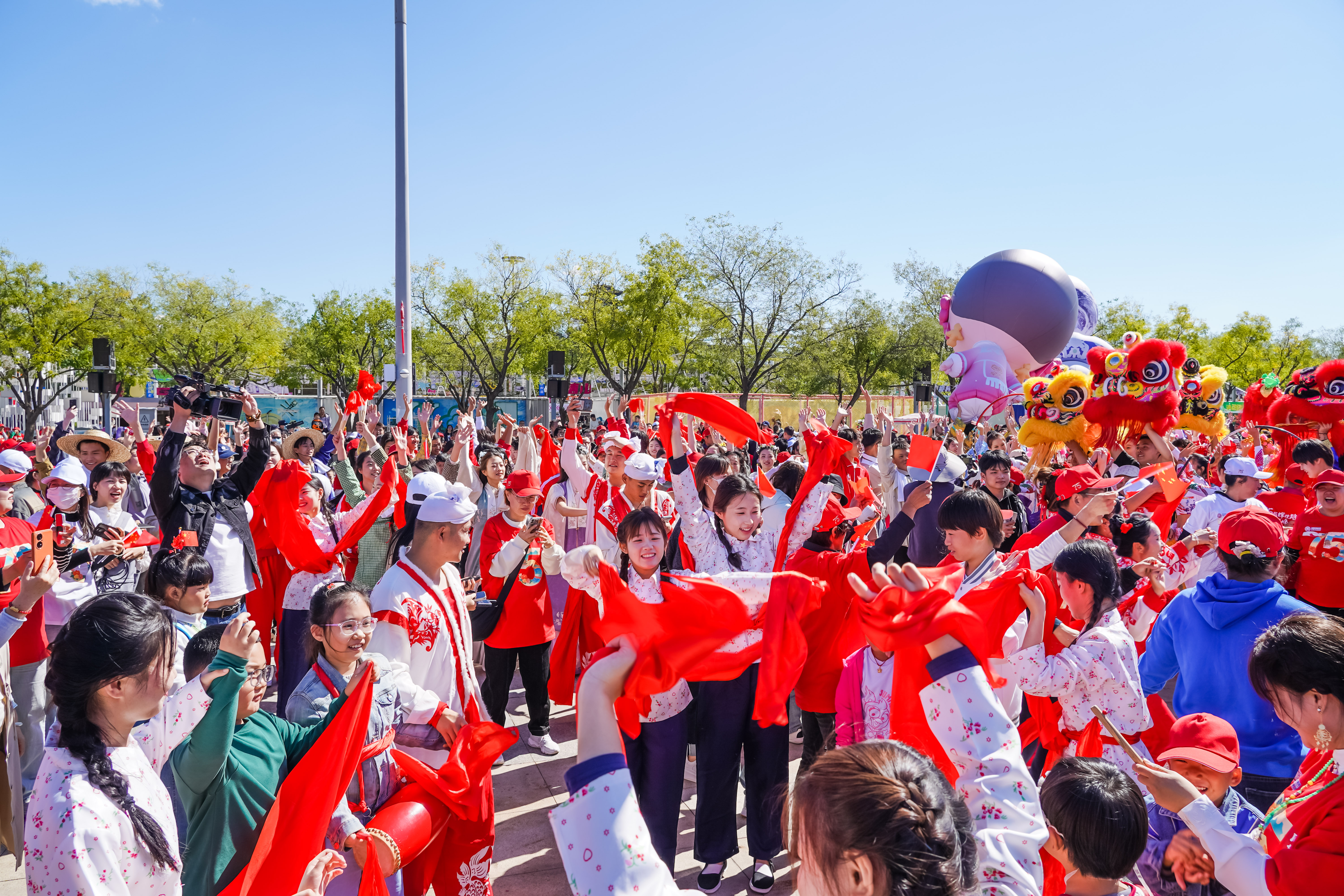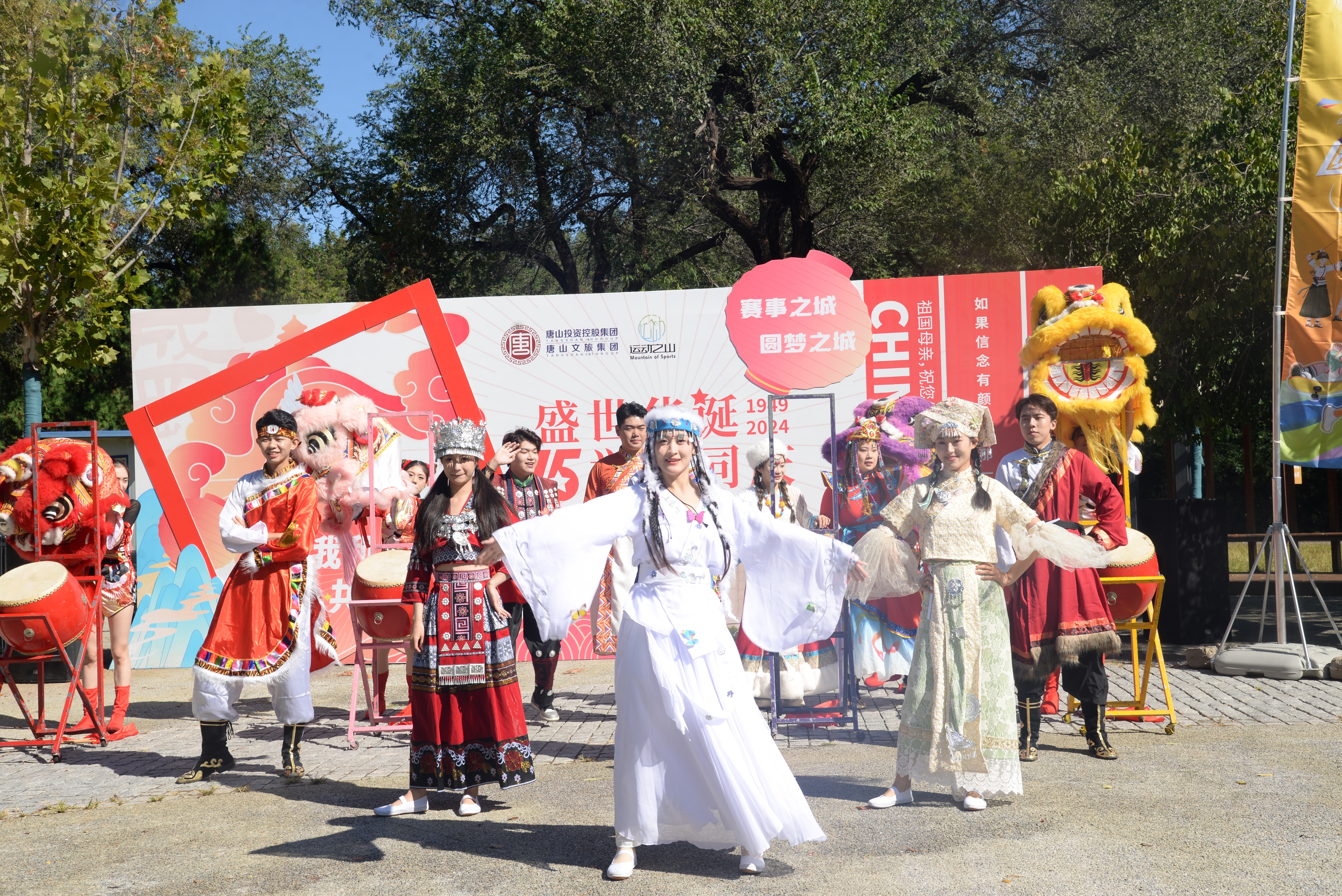 唐山花海景区则充分结合自身资源优势,推出百米长卷致敬祖国、“强国有我”国防体育运动周、快闪讲解等主题活动。百米长卷致敬祖国活动邀请游客在百米长卷上绘制出祖国壮美山河、中华优秀传统文化、人民群众幸福生活等内容,共同向祖国献上最真挚的祝福。“强国有我“国防体育运动周则通过体育竞技的形式,培养人们的国防意识、团队精神和拼搏精神。走进培仁历史文化街,红色主题儿童文艺展演、乐队表演吸引众多游客驻足欣赏。祝福语盲盒墙则吸引众多游客前来写下对祖国母亲的真挚祝福。