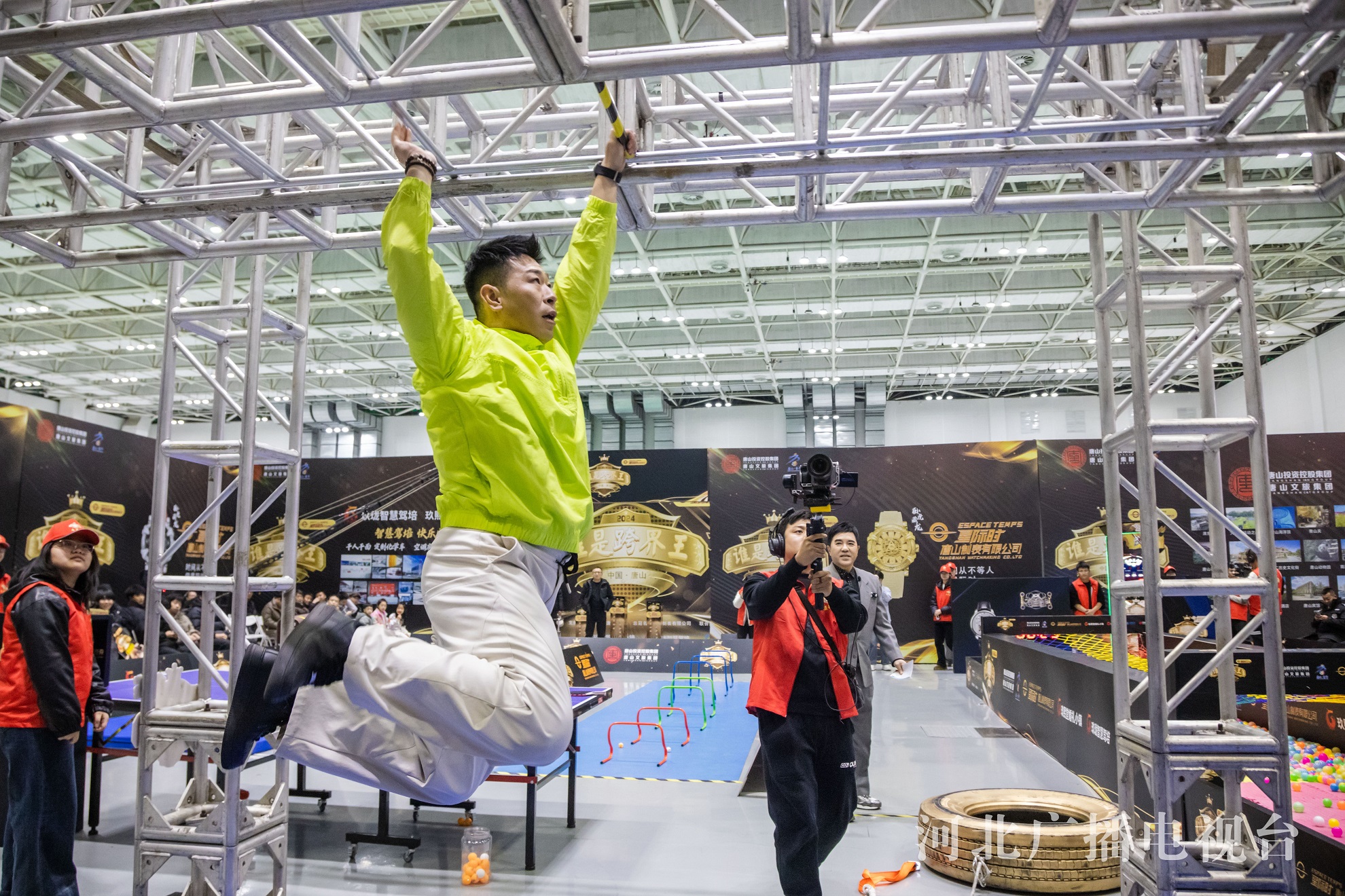 体能大冲关环节则充分考验参赛选手的身体素质和运动能力。选手需在规定时间内完成匍匐前进、阻力前行跑、乒乓球、障碍跳跃、跳马、云梯等挑战项目,以此全方位检验参赛选手的力量、速度、耐力及协调性等各方面身体素质。比赛现场,参赛选手们个个精神饱满,全力以赴投入每一个项目的挑战中。现场观众则纷纷为参赛选手们加油助威,现场掌声、欢呼声此起彼伏,气氛热烈异常。经过激烈角逐,首场正赛共有2名参赛选手成功晋级总决赛。