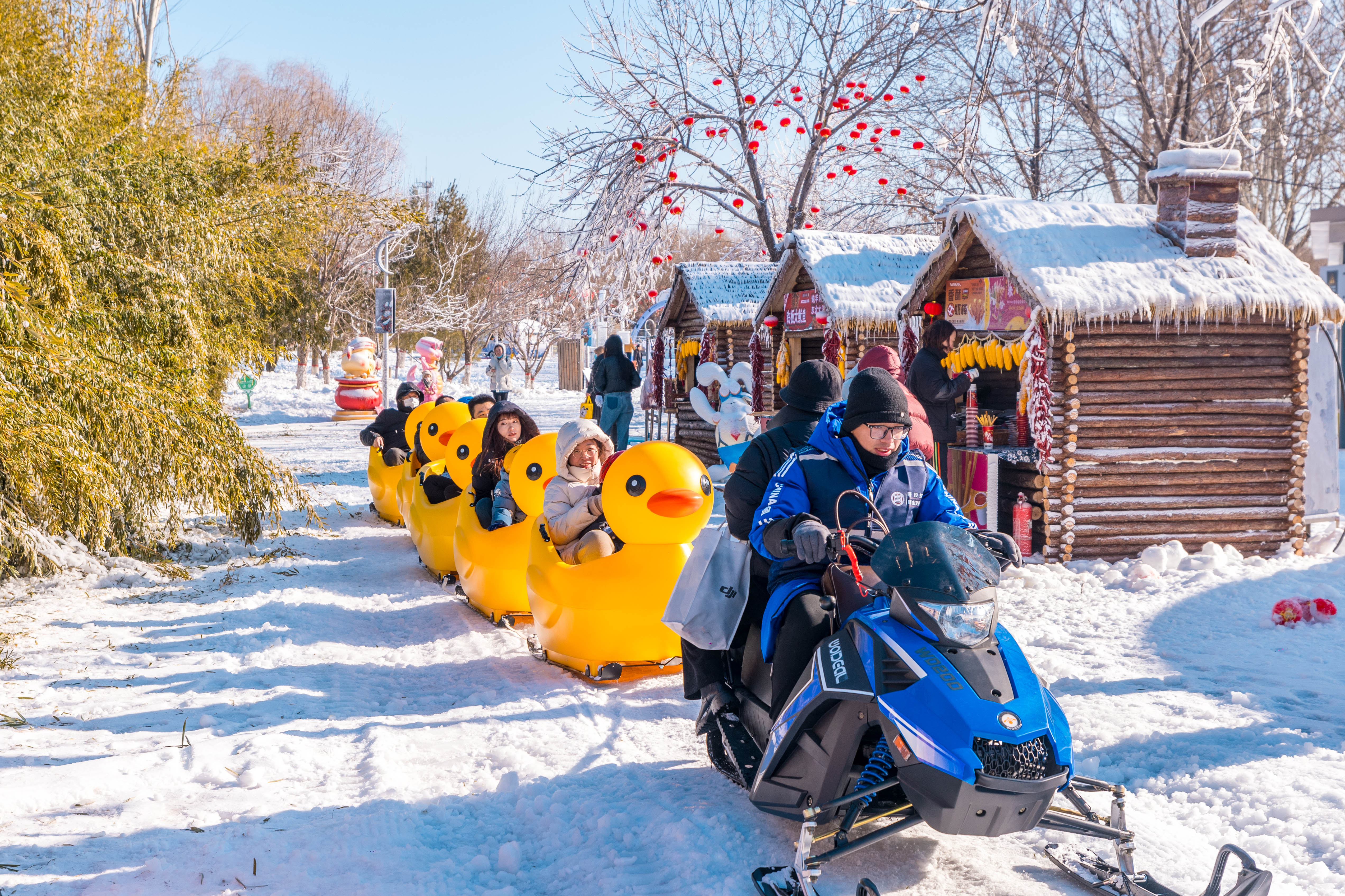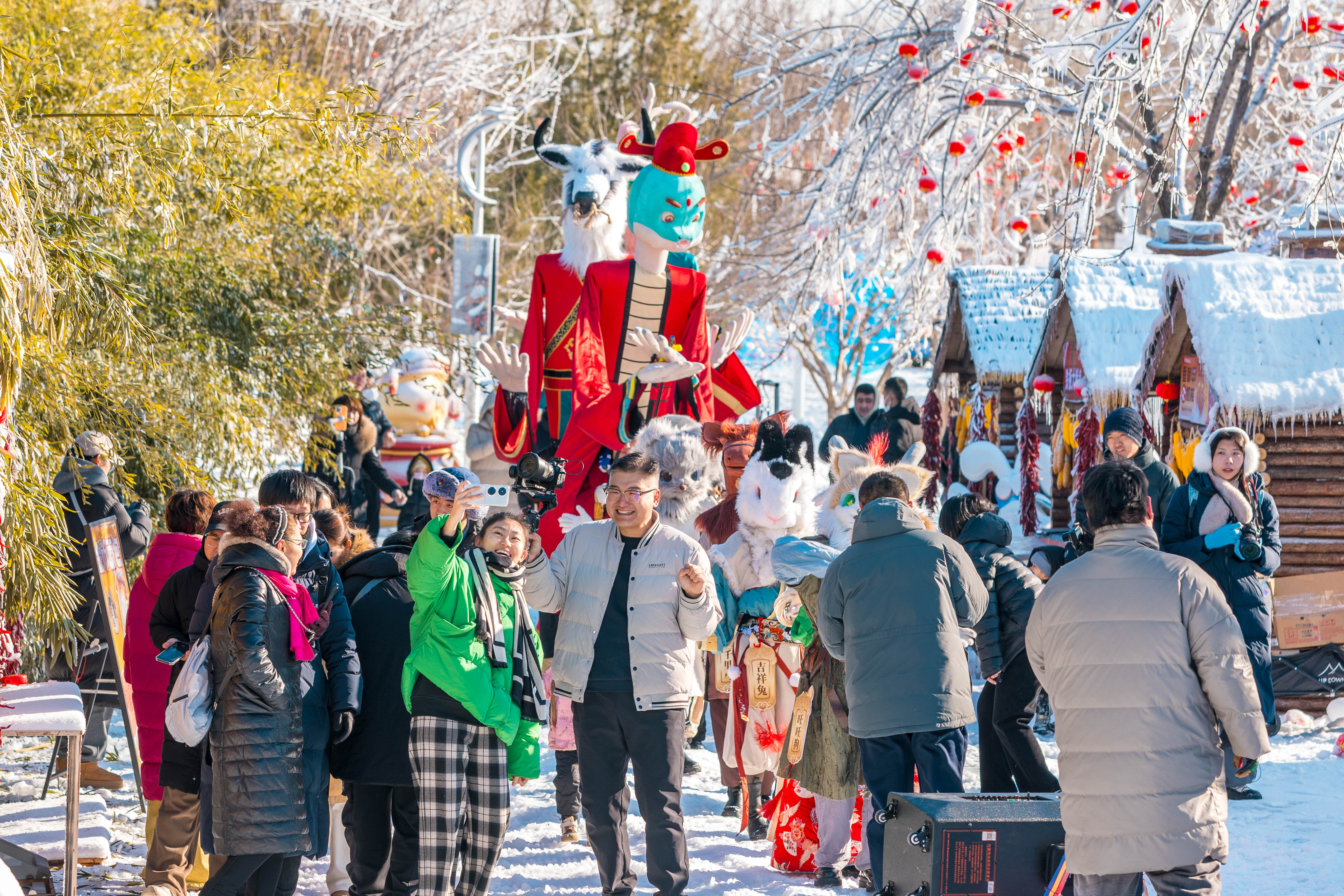 本届冰雪欢乐季还设置了雪人谷、年俗趣玩街等冰雪和年俗打卡区域。雪人谷内,高达5米的巨型雪人与圆滚滚的上百个小雪人喜迎八方游客,将这里打造成童话般的世界。年俗趣玩街里,幸运蛇、状元蛇、贪吃蛇等蛇宝主题雕塑憨态可掬。九福百财雪雕、大招财蛇等雕塑则带来财源广进、百业兴旺的美好期盼,吸引众多游客前来打卡合影。