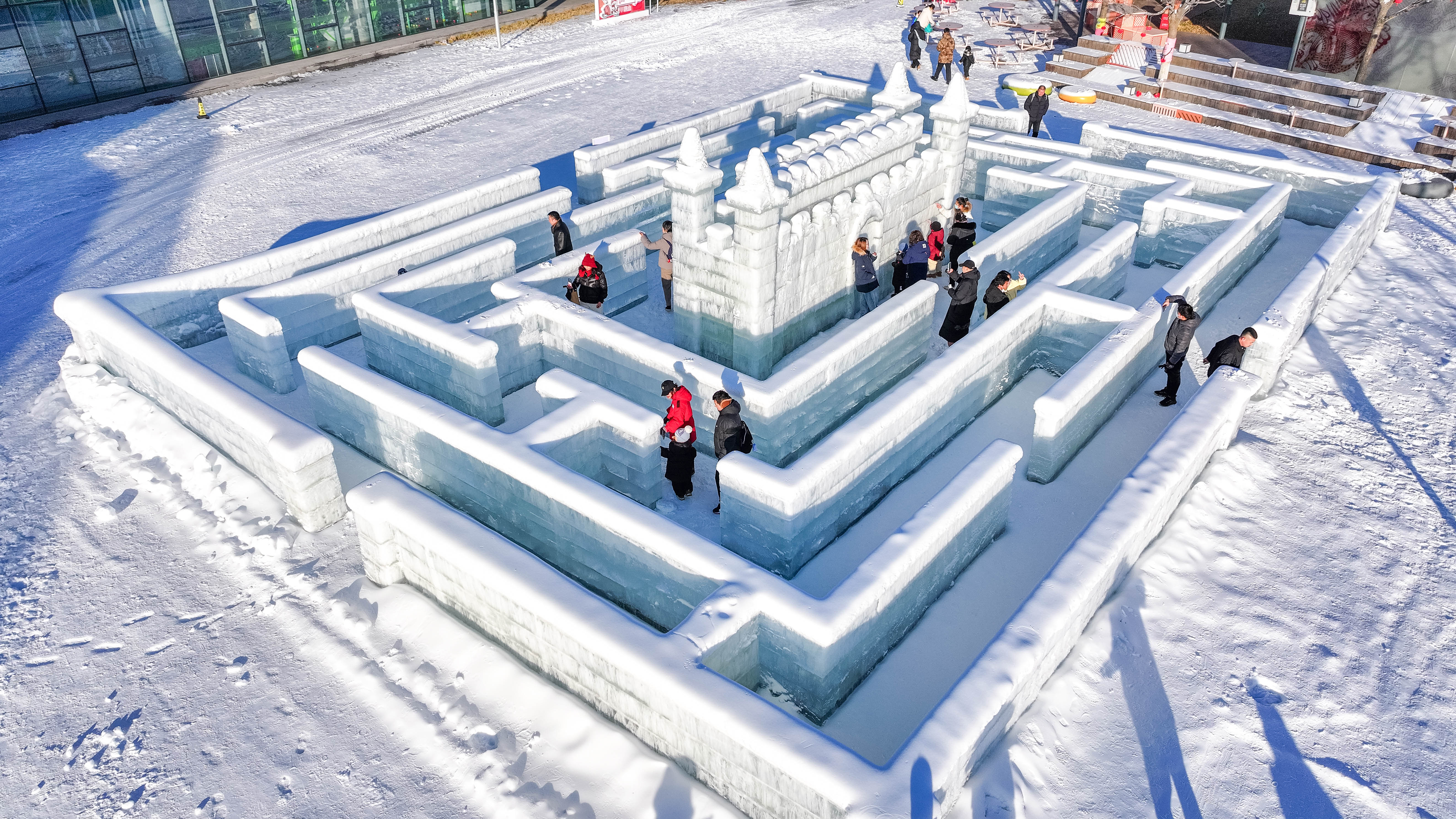着眼满足广大游客多样化游玩体验,活动设置了40余项冰雪主题及其它园内娱乐项目,为游客带来冰天雪地极速滑行的刺激快感与花式滑冰戏雪的独特乐趣。备受游客欢迎的冰滑道、雪滑道迎来全面升级,总滑道数量增加至20条,总长度超1000米,让游客尽享飞一般的畅快感觉。雪地滚筒、冰上保龄球、雪地飞碟、雪地悠波球、雪地摩托拉小黄鸭等众多冰雪娱乐项目现场人头攒动,处处充满欢声笑语。占地300平方米的冰迷宫由冰雪塑造而成,其内部布局精巧,利用不同大小、形状和纹理的冰块与雪塑,营造出奇幻的氛围。专门设置的打雪仗区域同样热闹非凡,无论是大朋友还是小朋友,都畅快享受着雪地里撒欢的欢乐时光。