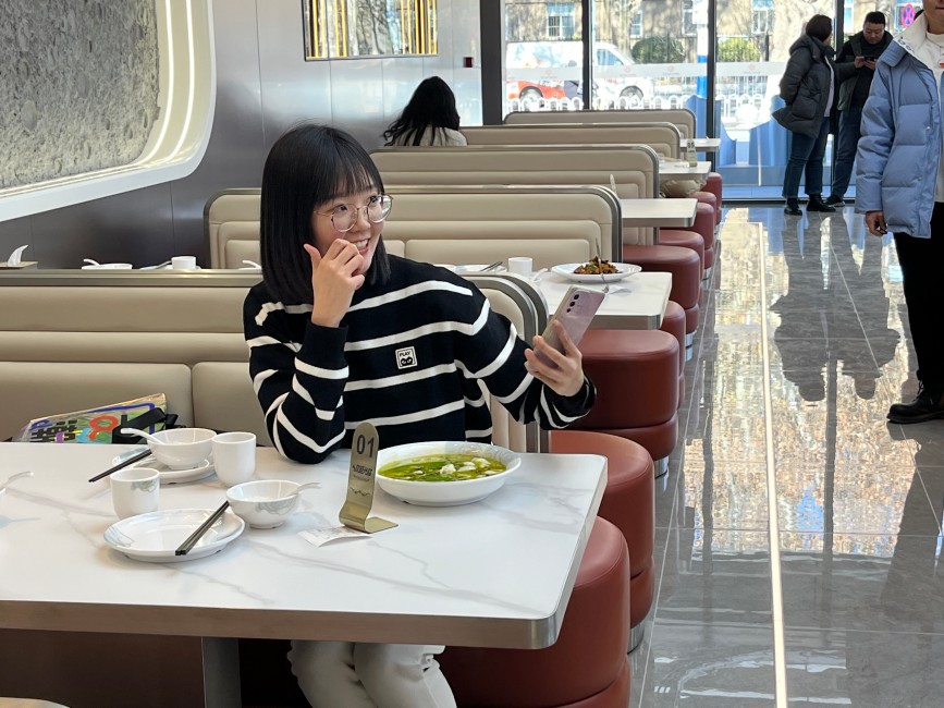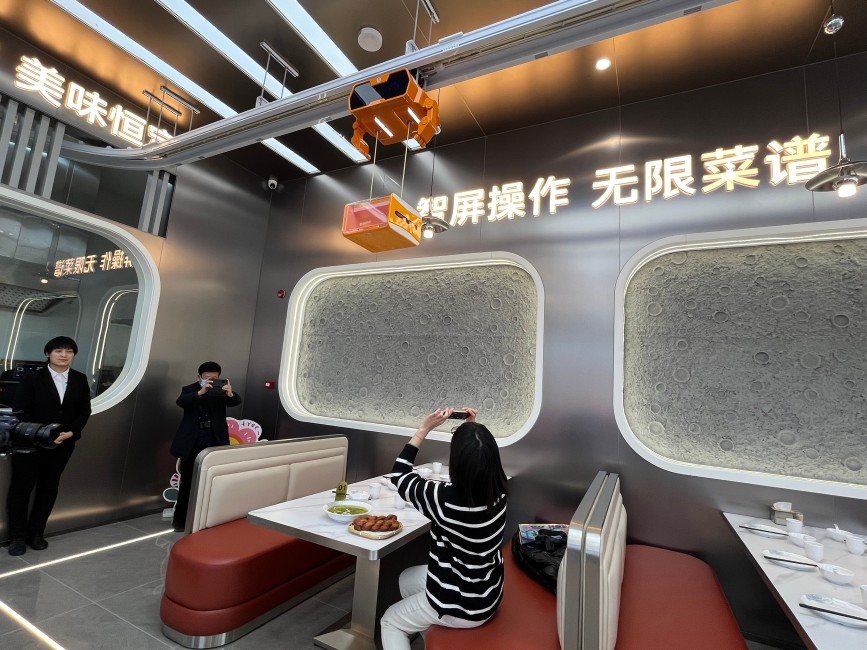 新开业的文旅·云餐智能餐厅占地325平方米,配备了8台智能餐饮机器人,能够提供60余种中式菜品,满足70余人的用餐需求。顾客进店后,由AI智慧引导机器人引领至餐位,并与顾客互动完成点餐。餐品由智能餐饮机器人制作完成后,依托送菜机器人或云轨系统快速、准确地送达顾客手中,为顾客带来全新的就餐体验。