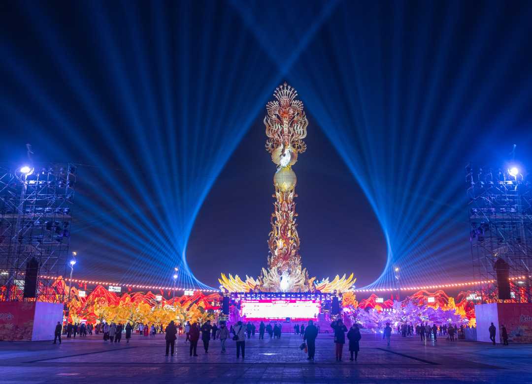 灯会分为三大主题灯区:年味中国、奇迹中国、神话中国。年味中国灯区通过丹凤迎春、奋进唐山等彩灯,展现春节氛围和唐山精神。福气年兽灯组结合AI科技,与游客欢乐互动。奇迹中国灯区展示中国古代科技成就,如星宿漫步、浑仪星海等,彰显民族智慧。神话中国灯区则带领游客穿越至华夏文明的源头,领略创世神话的魅力。