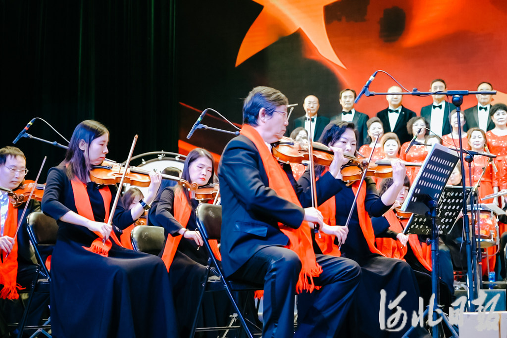 音乐会以管弦乐《红旗颂》拉开帷幕,激昂的旋律瞬间点燃全场热情。《唐山之歌》旋律悠扬,深情礼赞城市精神;评剧《刘伶醉酒》将“冀东三枝花”的独特韵味展现得淋漓尽致;《灯火里的中国》《保卫黄河》一柔一刚,共同谱写生生不息的家国情怀……整场音乐会激昂恢宏,带领观众在跨越时空的旋律中,畅享深情而壮阔的音乐旅程。